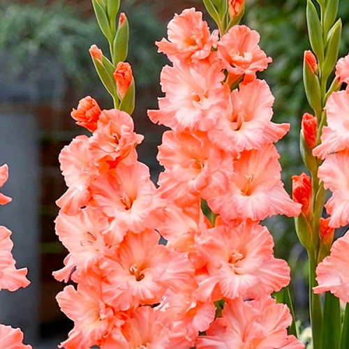 Gladiolus – Mieczyk Wielkokwiatowy Blushed Look to wyjątkowo elegancka i nowoczesna odmiana, która zachwyca subtelną, pastelową kolorystyką oraz smukłym, wyniosłym pokrojem. Kwiaty są duże, lejkowate, osadzone gęsto na wysokim pędzie i utrzymane w delikatnych odcieniach jasnego różu, przechodzących miejscami w niemal kremową biel. Całość prezentuje się niezwykle lekko i romantycznie, idealnie wpisując się w nowoczesne oraz klasyczne aranżacje ogrodowe.